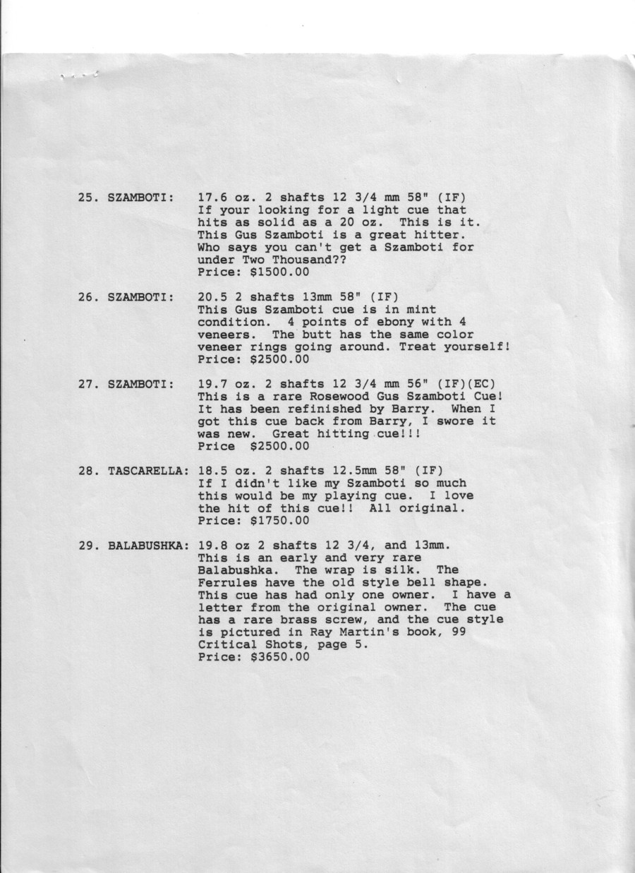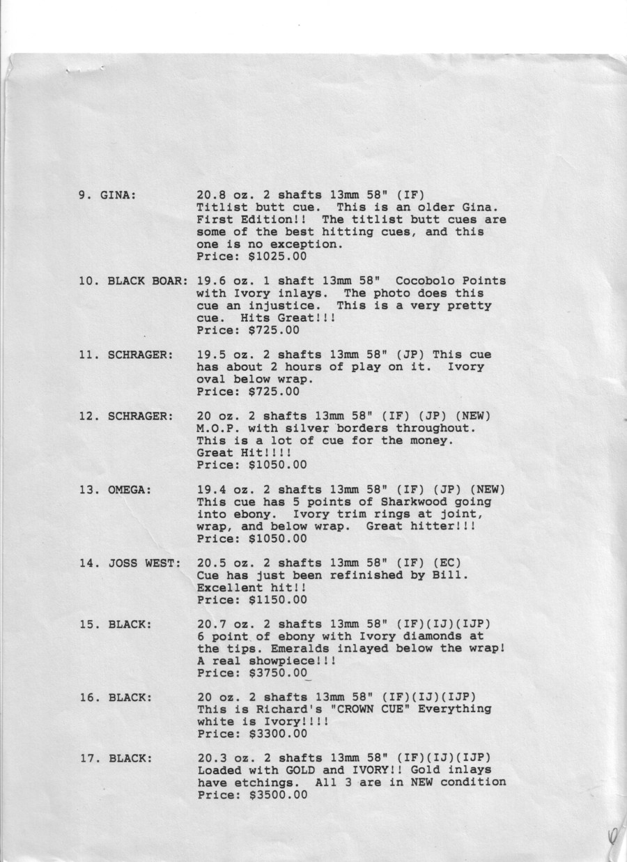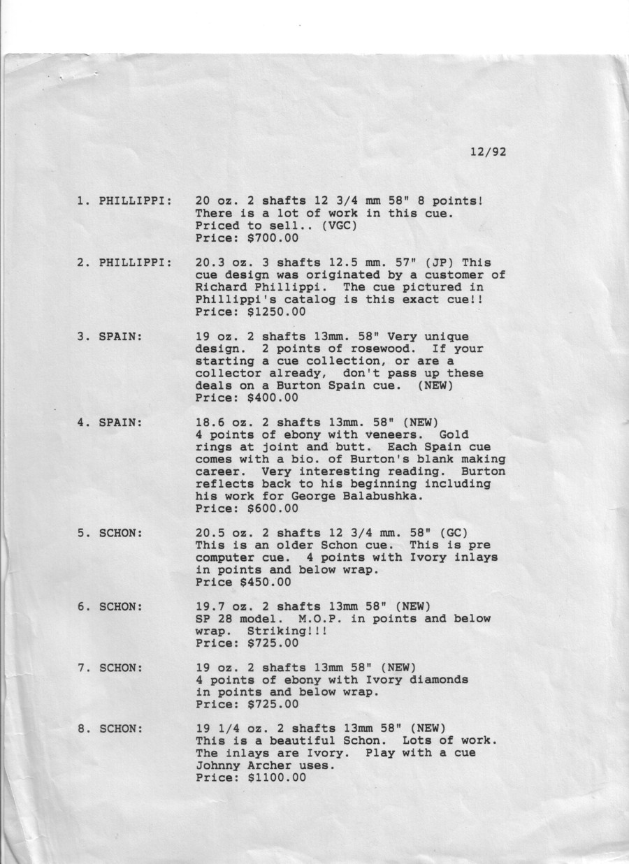 Dealer pics and prices circa 1992. Healthware Fitness and Billiards (Joel Hercek's company). Items not for sale.