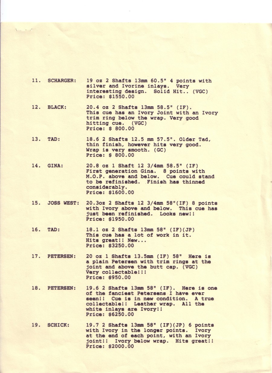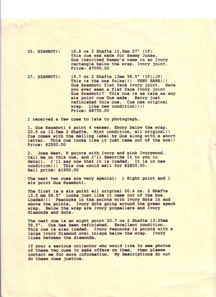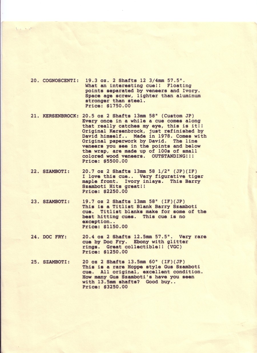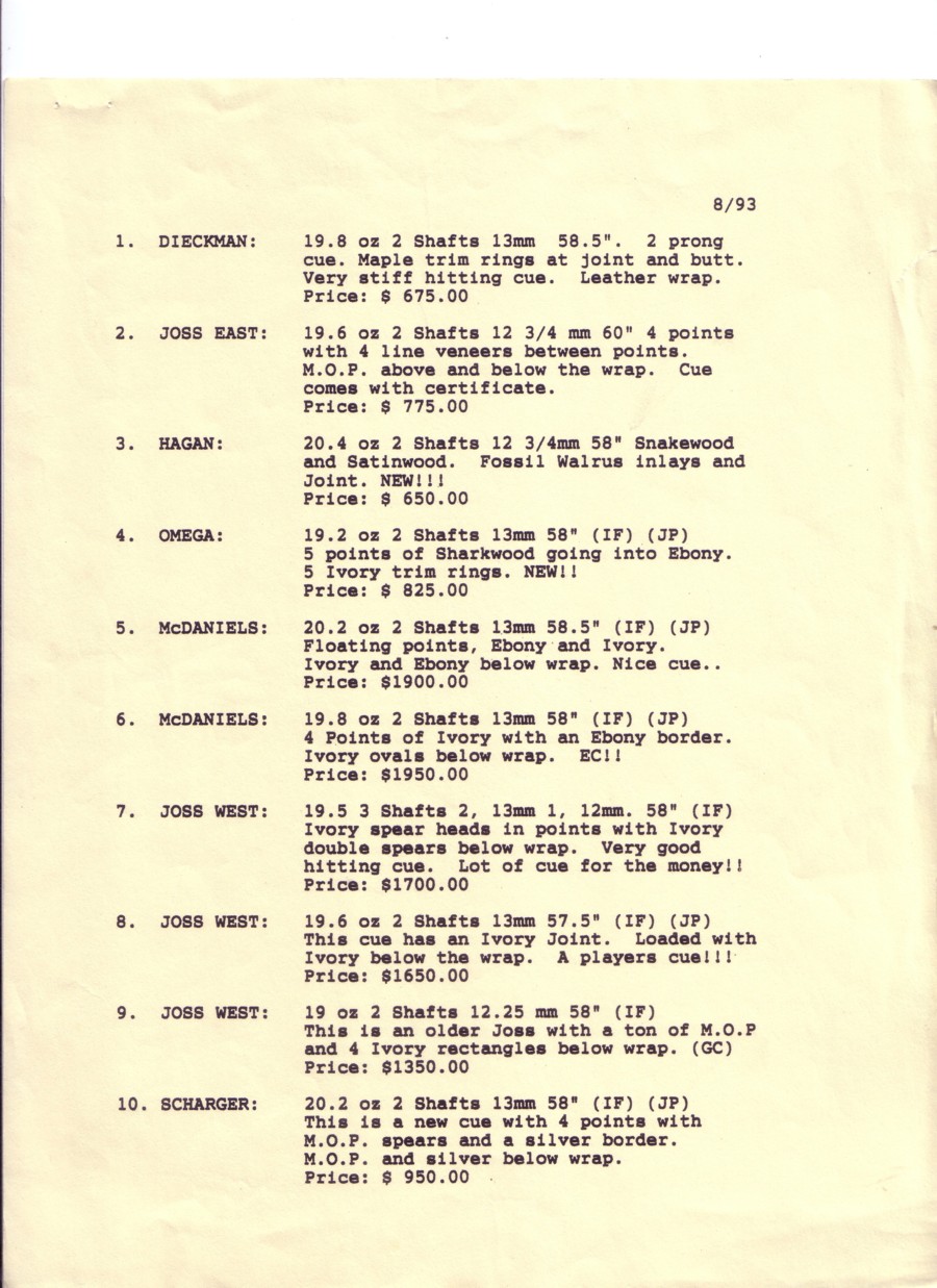 Dealer pics and prices circa 1993. Healthware Fitness and Billiards (Joel Hercek's company). Items not for sale.